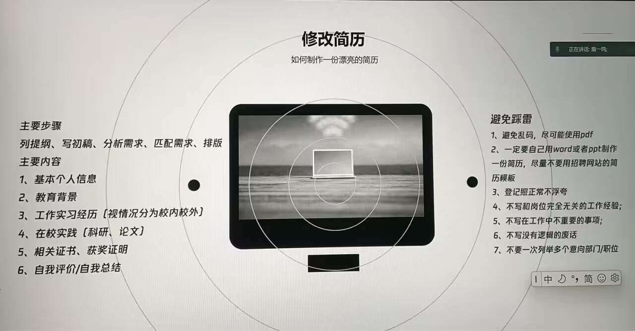 在谈到如何制作简历、准备面试和秋招时,詹学长更是毫无保留地分享了自己的“干货”。他详细阐述了简历的制作要点、面试的技巧以及如何在秋招中脱颖而出。这些实用建议让在场的同学们受益匪浅。
