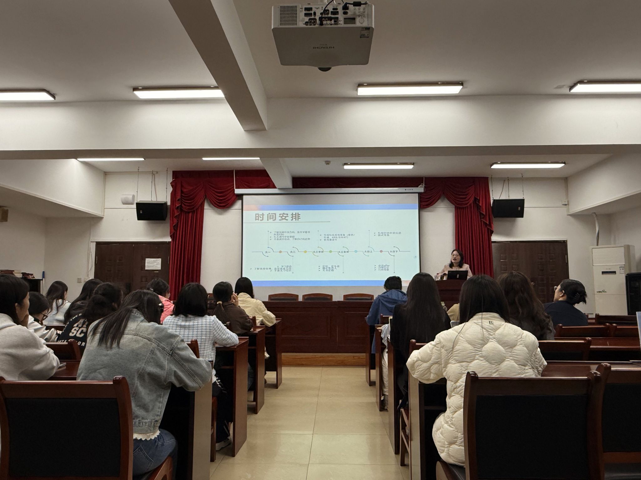 艾佳华还为各年级同学勾勒了清晰的时间规划路径。大一:全力冲刺提升GPA,筑牢学业根基;大二:稳定GPA,通过大学英语四六级,并开始积累高质量的实习经历;大三:攻克语言标化考试,查漏补缺;大四:有步骤、有规划地进行投递与面试。