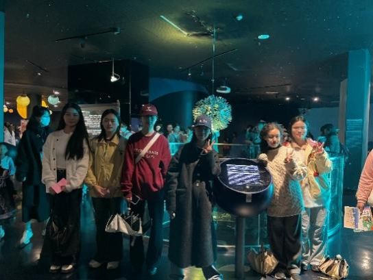 为帮助团员们深挖科学原理、深化知识理解,覃柳欣设计趣味互动游戏。团员们分为三组,王新如、薛钰涵、王靖舒分别担任组长,带领组员迎接挑战。游戏规则宣读完毕,大家迅速奔赴各展厅,以文字记录、相片定格、视频讲解等多元形式,探索展品背后的科学奥秘。从生命展厅的鲜活标本到宇宙展厅的绚丽星体模型,从信息展厅的3D打印机到交通展厅的蒸汽机,团员们亲眼见证、亲手操作,从基础科学逻辑中窥见未来科技的无限可能,在沉浸式体验中打破认知壁垒,走进科学殿堂。