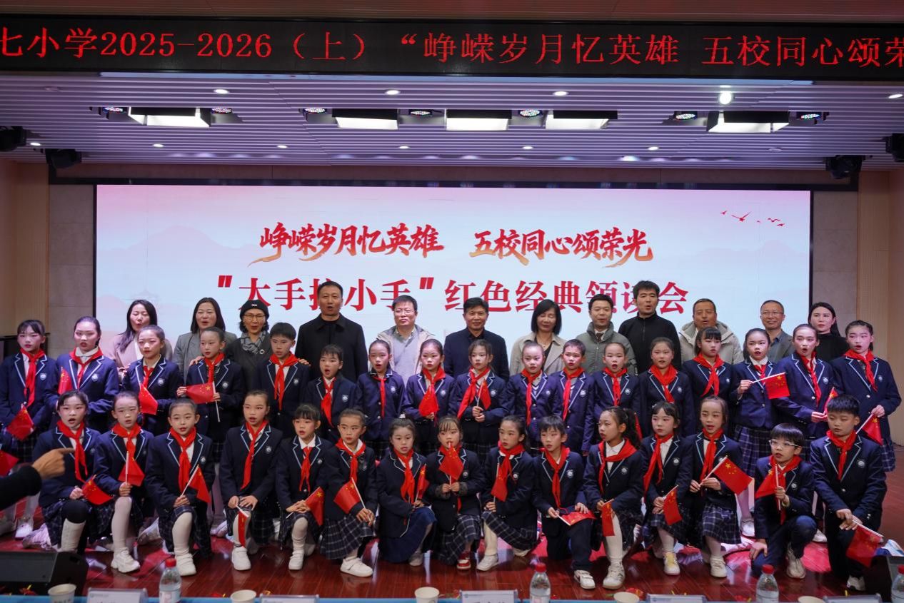 华新在线讯(通讯员:王梦竹 牛梓宁 王新如)为纪念中国人民抗日战争暨世界反法西斯战争胜利80周年,纪念“一二·九”抗日爱国学生运动90周年,12月5日下午,由华中师范大学新闻传播学院大学生红心宣讲团联合湖北省新华书店(集团)有限公司武汉市分公司主办,并由湖北广播电视台电视教育频道、《阅读时代》编辑部协办的“峥嵘岁月忆英雄 五校同心颂荣光”——“大手拉小手”抗战主题红色经典领读会在武汉市光谷第二十七小学圆满举行。我院党委书记夏守信、教授王丽出席活动。来自华中师范大学、光谷第二十六小学、光谷第二十七小学、华中科技大学附属花城中学及武汉晴川学院等五校的300余名师生齐聚一堂,通过经典诵读、情景演绎、歌舞表演、互动体验等多种形式,共同传承红色基因,弘扬伟大抗战精神与新时代爱国主义情怀。