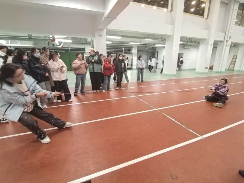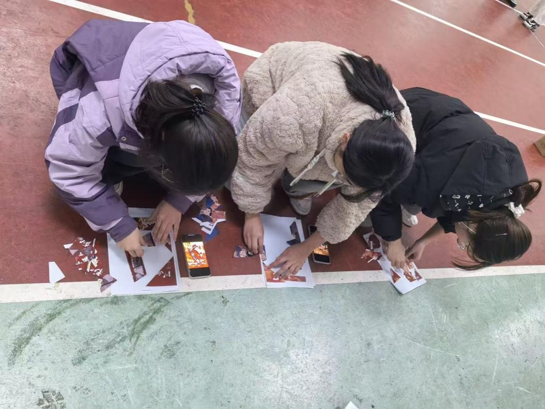 活动现场氛围热烈,拔河比赛的呐喊声、主题词汇你画我猜的欢笑声此起彼伏。为增添活动氛围,团支书李景丽特意准备了小礼品,为2025年最后一个团日活动增添了温暖与趣味。拔河比赛分为1v1、2v2、3v3三轮,选手们奋力拉扯绳索,队友们积极加油助威,现场热情高涨;在“你画我猜”环节中,“一二·九”运动、“爱国青年”、“民族觉醒”等关键词被同学们用生动的动作表现出来,既增添了趣味,又深化了对一二·九运动历史背景与精神内涵的理解;拼图环节中,共有6位同学分两轮完成了三张主题海报拼接,随着最后一块拼图就位,全场响起经久不息的掌声,红色精神再次闪耀。