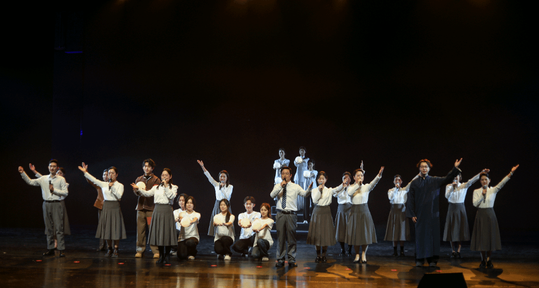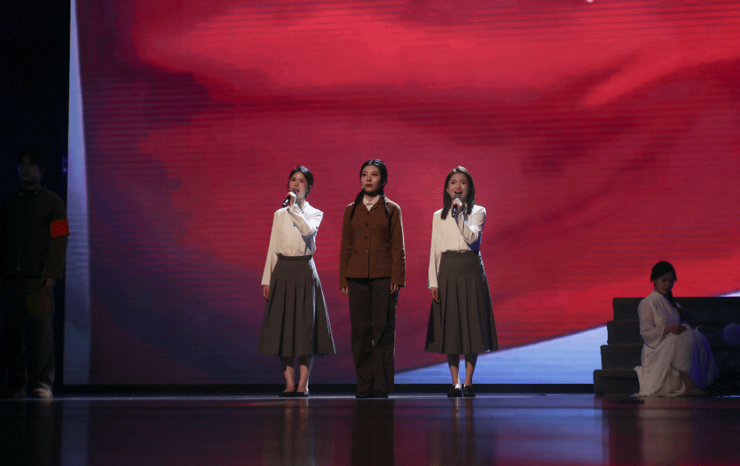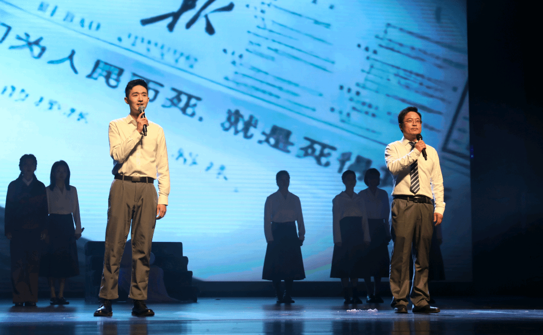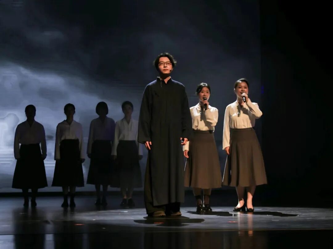 庄重的背景音乐响起,舞台灯光一束束落下。老师们身姿挺拔,目光沉稳,深情诉说着新闻人的追寻与坚守,“以昭德明理之心,行立言树人之实”;在抑扬顿挫间回望峥嵘岁月,相传薪火。篇章层层推进间,他们点燃内心真挚的热情,将朗诵推向高潮,“以文华之声,致敬百年传承”,带领观众感受跨越时空的精神力量。灯光渐暗,表演落幕,台下的掌声经久不息。