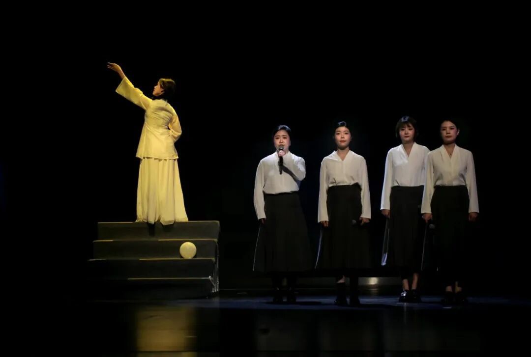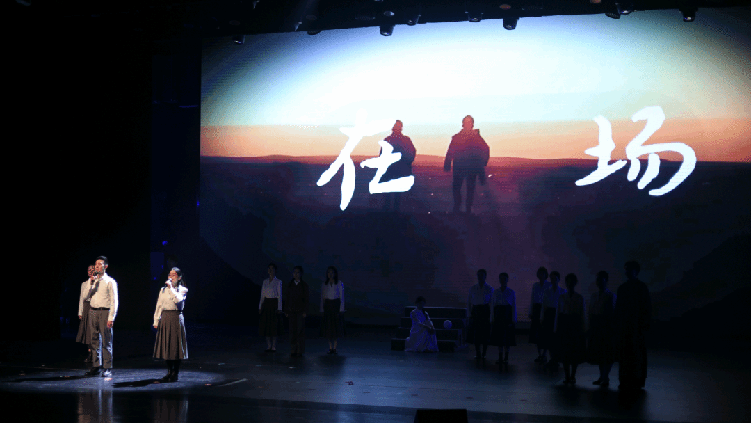 我院党委书记夏守信、党委副书记程秀莉、党政办公室主任陈晋、工会主席陈欧阳,以及耿书培、程渺然、徐阳等十四位老师带来情景朗诵《在场》。